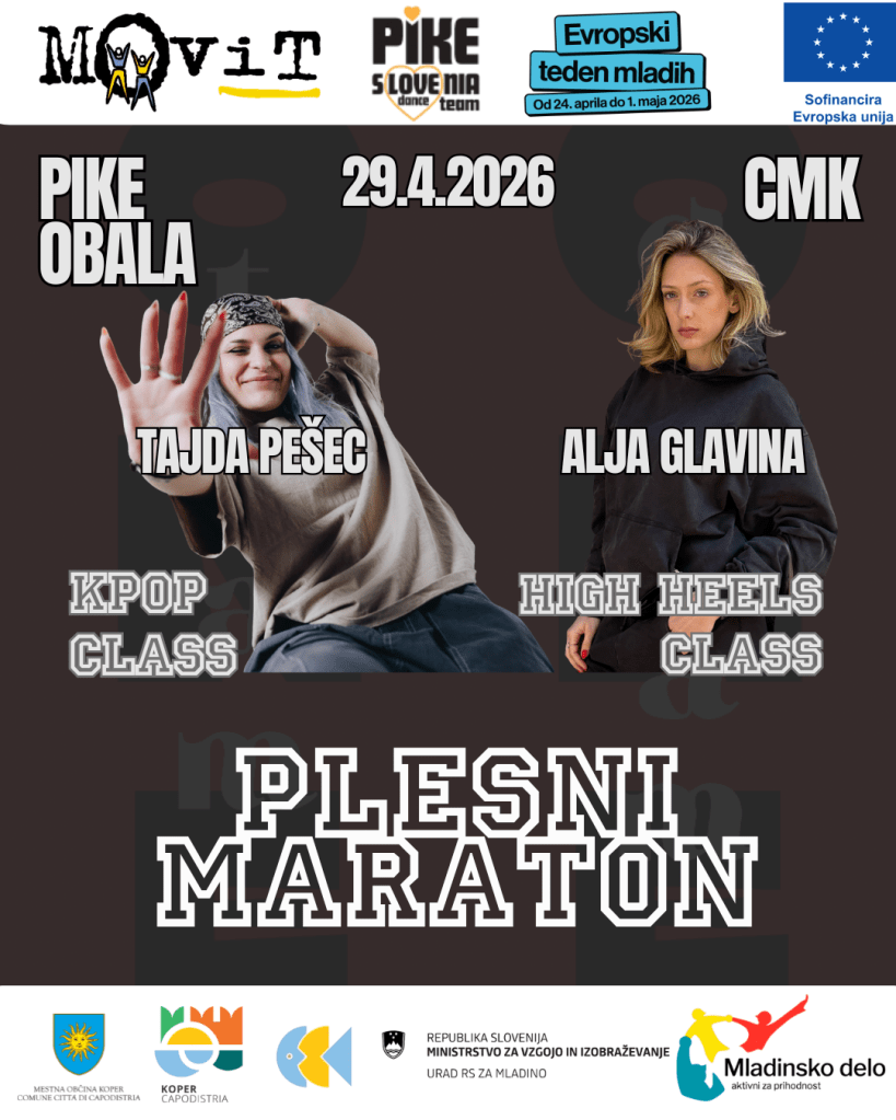 V sredo, 29. aprila 2026, v Plesnem društvu Pike Obala pripravljamo poseben plesni dogodek – Plesni maraton, ki bo potekal v prostorih CMK Koper.