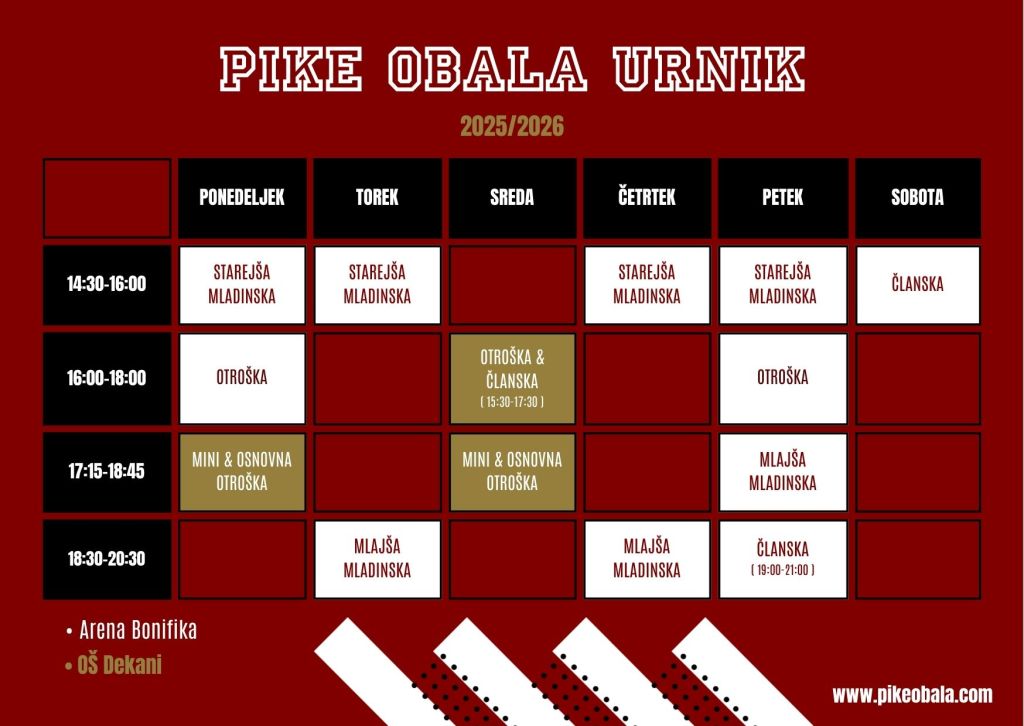 *Pridružujemo si pravico do spremembe urnika.